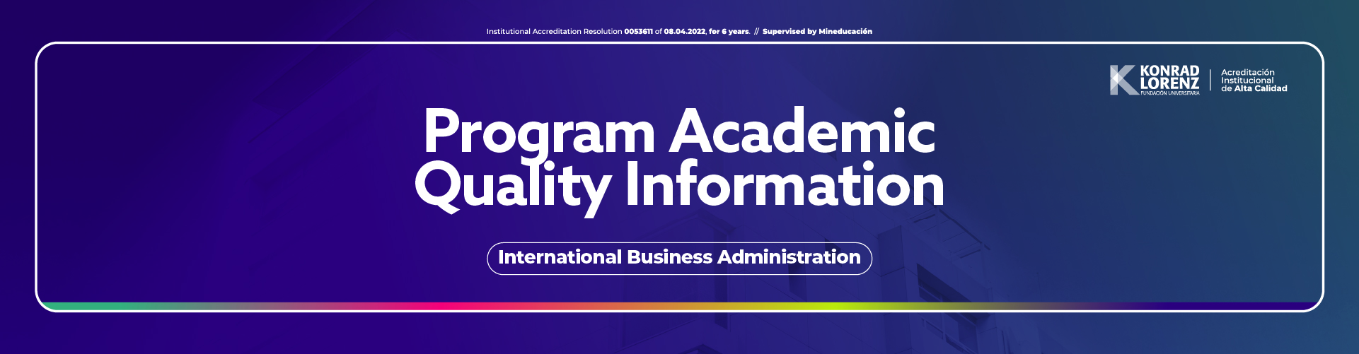 La Escuela de Negocios de la Fundación Universitaria Konrad Lorenz cuenta con acreditación internacional ACBSP desde el año 2016, convirtiéndose en una de las primeras en Colombia en obtener este reconocimiento. Esta acreditación ha consolidado su compromiso con la excelencia académica, la pertinencia de sus programas y la mejora continua como eje de su gestión educativa.