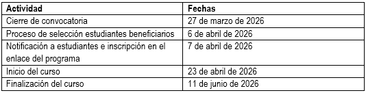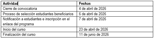 – Los estudiantes participantes recibirán una constancia de participación acorde con el programa, donde se detallará la duración y nota obtenida.