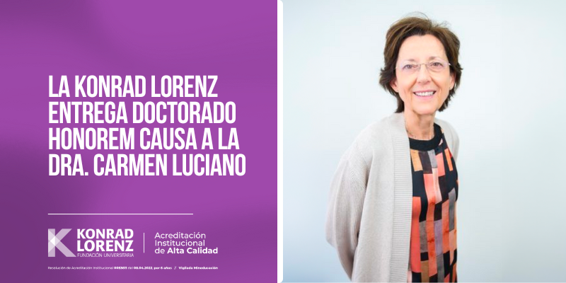 En el marco de la visita de la Dra. Carmen Luciano Soriano a nuestra institución, en la cual participó en varios espacios académicos entre el 16 al 22 de noviembre, la Fundación Universitaria Konrad Lorenz le otorgó el título Doctorem Honoris Causa, por ser una de las figuras más destacadas y visionarias en el ámbito de la psicología clínica y el análisis de la conducta a nivel internacional.
