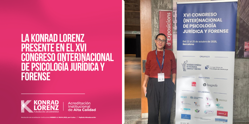 La Fundación Universitaria Konrad Lorenz continúa fortaleciendo su presencia internacional y su compromiso con la investigación de alto impacto. En esta ocasión, la docente e investigadora Paola Rocío Bustos Benítez, de la Escuela de Posgrados asociada al programa de Especialización en Psicología Forense y Criminal, representó a la institución en el XVI Congreso (Inter)Nacional de Psicología Jurídica y Forense, realizado en la ciudad de Barcelona, del 23 al 25 de octubre de 2025.